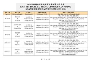 LỊCH THI TOCFL 2026 TẠI HÀ NỘI – PHÒNG GIÁO DỤC VĂN PHÒNG KT&VH ĐÀI BẮC TẠI VIỆT NAM